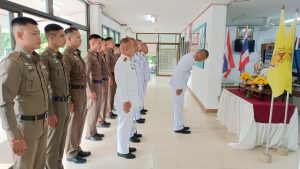 เมื่อวันที่ 25 ก.ค.68 เวลา 08.30 น. พ.ต.ท.บุญรักษ์ เชิดชู สว.สภ.นาโดน พร้อมด้วยข้าราชการตำรวจในสังกัด ร่วมกันจัดพิธีกล่าวคำถวายพระพรชัยมงคลและคำถวายสัตย์ปฏิญาณเพื่อเป็นข้าราชการที่ดีและพลังของแผ่นดิน เนื่องในโอกาสพระราชพิธีมหามงคลเฉลิมพระชนมพรรษา 28 กรกฎาคม 2568 ณ สภ.นาโดน