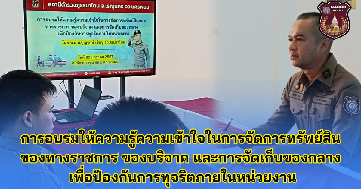 วันนี้ 30 ม.ค.68 เวลา 09.00 น. สถานีตำรวจภูธรนาโดน โดย พ.ต.ท.บุญรักษ์ เชิดชู สว.สภ.นาโดน ได้จัดอบรมให้ความรู้ความเข้าใจในเรื่องการจัดการทรัพย์สินของทางราชการ ของบริจาค และการจัดเก็บของกลาง ให้แก่เจ้าหน้าที่ตำรวจในสังกัด เพื่อให้มีการจัดเก็บ การเบิกจ่าย นำไปใช้ในการปฏิบัติงานของเจ้าหน้าที่ตำรวจ เป็นไปอย่างโปร่งใส มีประสิทธิภาพ คุ้มค่า และเกิดประโยชน์สูงสุดในเชิงภารกิจของสำนักงานตำรวจแห่งชาติ และเพื่อให้เจ้าหน้าที่ตำรวจในสังกัดได้ถือปฏิบัติไปในแนวทางเดียวกัน