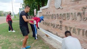 วันนี้ 21 พ.ค.68 เวลา 09.00 น. พ.ต.ท.บุญรักษ์ เชิดชู สว.สภ.นาโดน เรียกข้าราชการตำรวจในสังกัดเพื่อร่วมกันทำกิจกรรม 5 ส.รอบบริเวณโรงพัก ทาสีป้าย สภ.นาโดน ใหม่