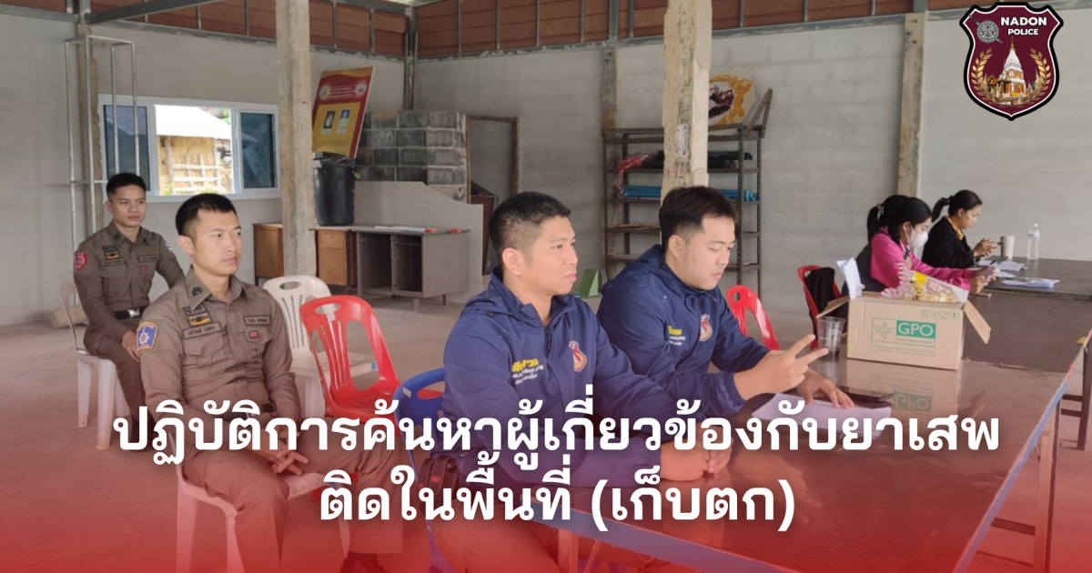 วันนี้ 7 ก.พ.68 เวลา 09.00 น. โดยการอำนวยการโดย พ.ต.ท.บุญรักษ์ เชิดชู สว.สภ.นาโดน มอบหมายให้ชุดสืบสวน สภ.นาโดน ร่วมลงพื้นที่เพื่อปฏิบัติการตามแผนปฏิบัติการประชาคมหมู่บ้าน เพื่อค้นหาผู้เกี่ยวข้องกับยาเสพติดในพื้นที่ ต.โคกหินแฮ่ อ.เรณูนคร จว.นครพนม