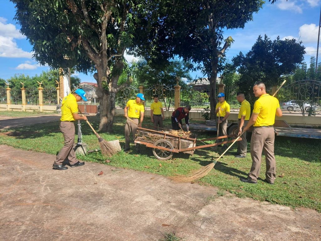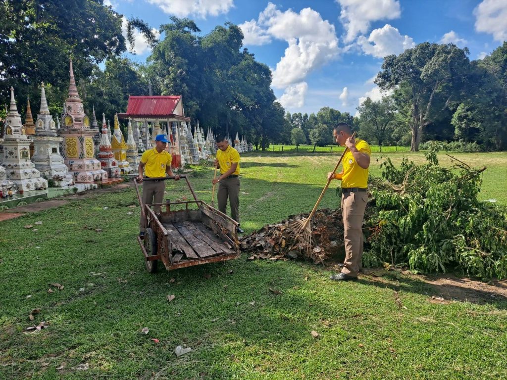 วันที่ 26 ก.ค.66 เวลา 15.00 น. พ.ต.ท.บุญรักษ์ เชิดชู สว.สภ.นาโดน พร้อมด้วยข้าราชการตำรวจและตำรวจจิตอาสา สภ.นาโดน ร่วมกิจกรรมจิตอาสาพัฒนาเนื่องในวันสำคัญวันเฉลิมพระชนพรรษาพระบาทสมเด็จพระวชิระเกล้าเจ้าอยู่หัว 28 กรกฎาคม 2566 ทำความสะอาด ตัดหญ้า กวาดใบไม้และเก็บขยะ ณ วัดศรีธนนชัย บ้านนาโดนใหม่ ต.โคกหินแฮ่ อ.เรณูนคร จ.นครพนม