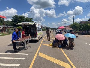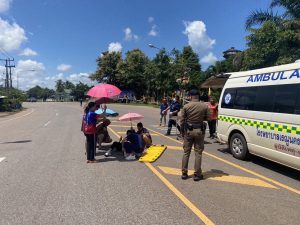 ออกตรวจที่เกิดเหตุกรณีรถจักรยานยนต์ชนกัน มีผู้ได้รับบาดเจ็บ 3 ราย บริเวณ โค้งหน้าวัดสระแก้ว บ้านโคกหินแฮ่ ต.โคกหินแฮ่ อ.เรณูนคร จว.นครพนม