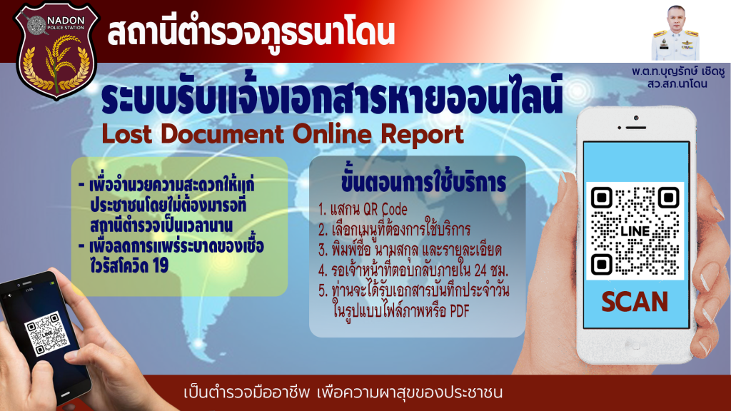 ประชาสัมพันธ์ระบบรับแจ้งเอกสารหายออนไลน์ของสถานีตำรวจภูธรนาโดน