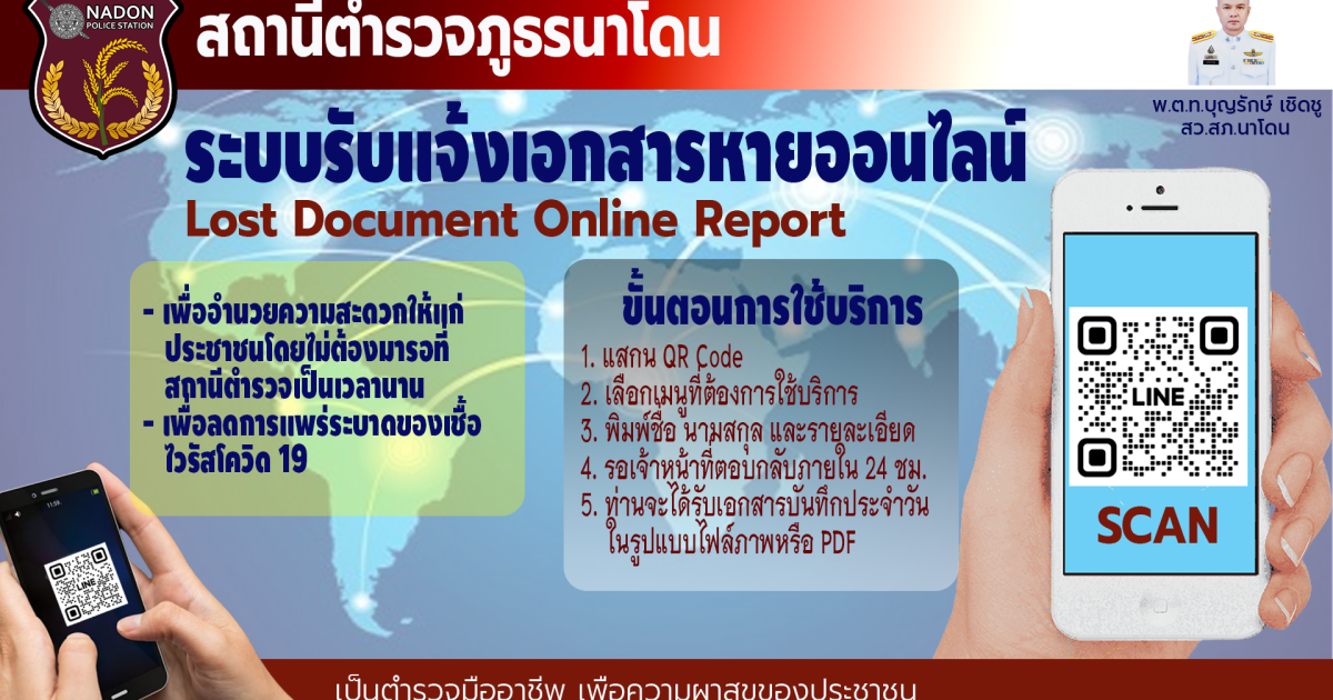 ประชาสัมพันธ์ระบบรับแจ้งเอกสารหายออนไลน์ของสถานีตำรวจภูธรนาโดน