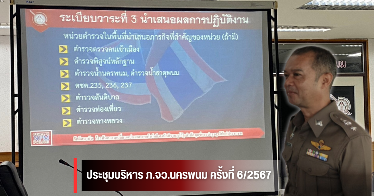 วันนี้ (5 มิ.ย.67) เวลา 09.00 น. พ.ต.ท.บุญรักษ์ เชิดชู สว.สภ.นาโดน เดินทางไปประชุมบริหาร ภ.จว.นครพนม ครั้งที่ 6/2567 ที่อาคารแสงสิงแก้ว ภ.จว.นครพนม