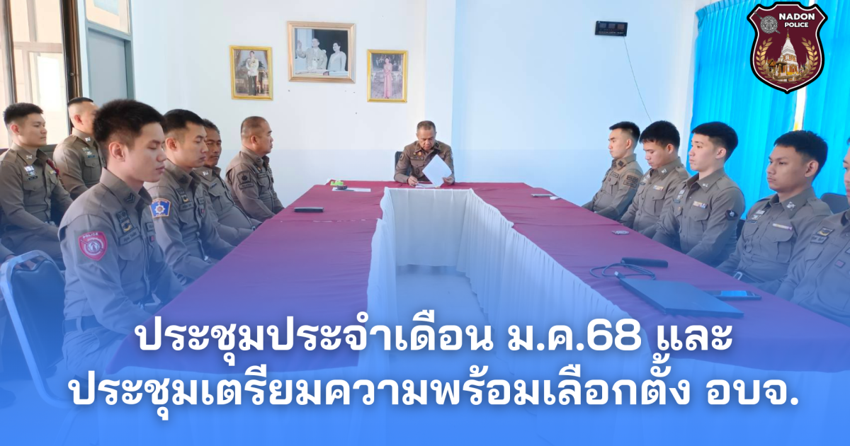 วันนี้ 31 ม.ค.68 เวลา 13.30 น.พ.ต.ท.บุญรักษ์ เชิดชู สว.สภ.นาโดน เรียกข้าราชการตำรวจในสังกัดเข้าร่วมประชุมประจำเดือน มกราคม 2568 และเตรียมความพร้อมในการรักษาความปลอดภัยในการเลือกตั้งสมาชิกสภาองค์การบริหารส่วนจังหวัด พร้อมกำชับเจ้าหน้าที่ทุกนายให้วางตัวเป็นกลางทางการเมือง
