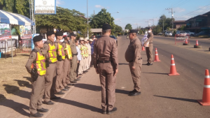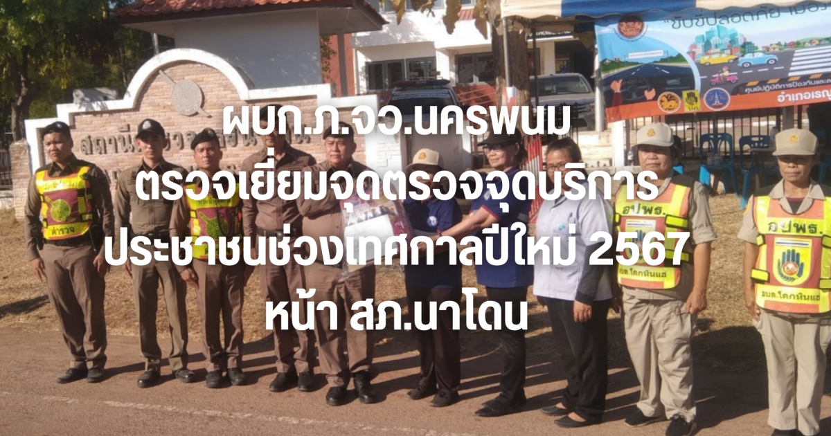 วันนี้ (29 ธ.ค.66) เวลา 14.10 น. พล.ต.ต.ธวัชชัย ถุงเป้า ผบก.ภ.จว.นครพรม เดินทางมาตรวจเยี่ยมจุดตรวจบูรณาการป้องกันและลดอุบัติเหตุจราจรทางถนนช่วงเทศกาลปีใหม่ 2567 บริเวณจุดตรวจหน้า สภ.นาโดน พบ พ.ต.ท.บุญรักษ์ เชิดชู สว.สภ.นาโดน พร้อมข้าราชการตำรวจ,เจ้าหน้าที่ฝ่ายปกครอง,อพปร.,อสม.และหน่วยกู้ชีพ EMS 1669 ต.โคกหินแฮ่ฯ อยู่ปฏิบัติหน้าที่ประจำจุดตรวจด้วยความเสียสละ เข้มแข็ง มุ่งมั่นปฏิบัติหน้าที่เพื่อให้ผู้ใช้รถใช้ถนนเดินทางด้วยความปลอดภัย พร้อมได้กำชับการปฏิบัติด้วยความสุภาพ คำนึงถึงความปลอดภัยของเจ้าหน้าที่ผู้ปฏิบัติงานทุกท่านทุกฝ่าย พร้อมให้กวดขันวินัยจราจรตาม 10 ข้อหาหลักอย่างเคร่งครัด และออกเดินทางตรวจเยี่ยมจุดตรวจในสังกัด ต่อไป