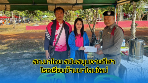 สภ.นาโดน มอบเงินสนับสนุนงานกีฬาโรงเรียนบ้านนาโดนใหม่