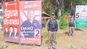 ได้ตรวจตราในจุดล่อแหลมต่างๆ ยังไม่พบการกระทำลักษณะที่จะเข้าข่ายการกระทำความผิดกฎหมายเลือกตั้ง,ป้ายหาเสียงในเส้นทางที่ตรวจตรายังปกติดีไม่ชำรุดเสียหาย
