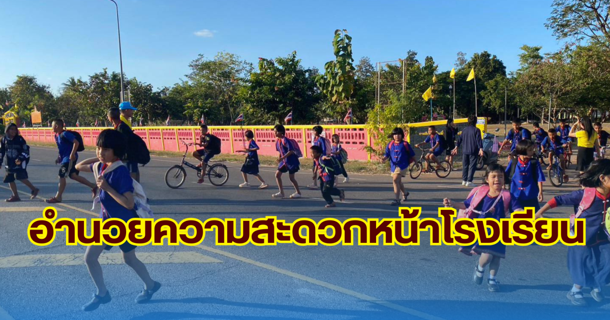 อำนวยความสะดวกการจราจรหน้าโรงเรียนบ้านนาโดนใหม่