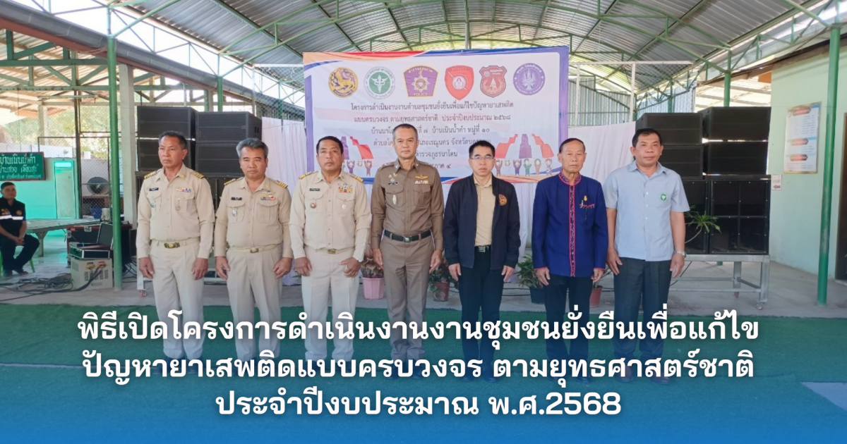 จัดพิธีเปิดโครงการดำเนินงานตำบลยั่งยืน เพื่อแก้ไขปัญหายาเสพติดแบบครบวงจรตามยุทธศาสตร์ชาติ และร่วมลงนามบันทึกข้อตกลง (MOU) ,ประชาคมปัญหาภายในชุมชน ประจำปีงบประมาณ พ.ศ. 2568 โดยมี นายภัทรชัย หาญวิสิฏ์ นายอำเภอเรณูนคร เป็นประธานในพิธีฯ