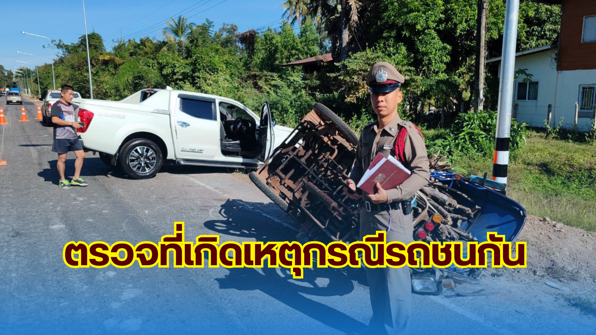 ตรวจที่เกิดเหตุกรณีเหตุรถชนกัน