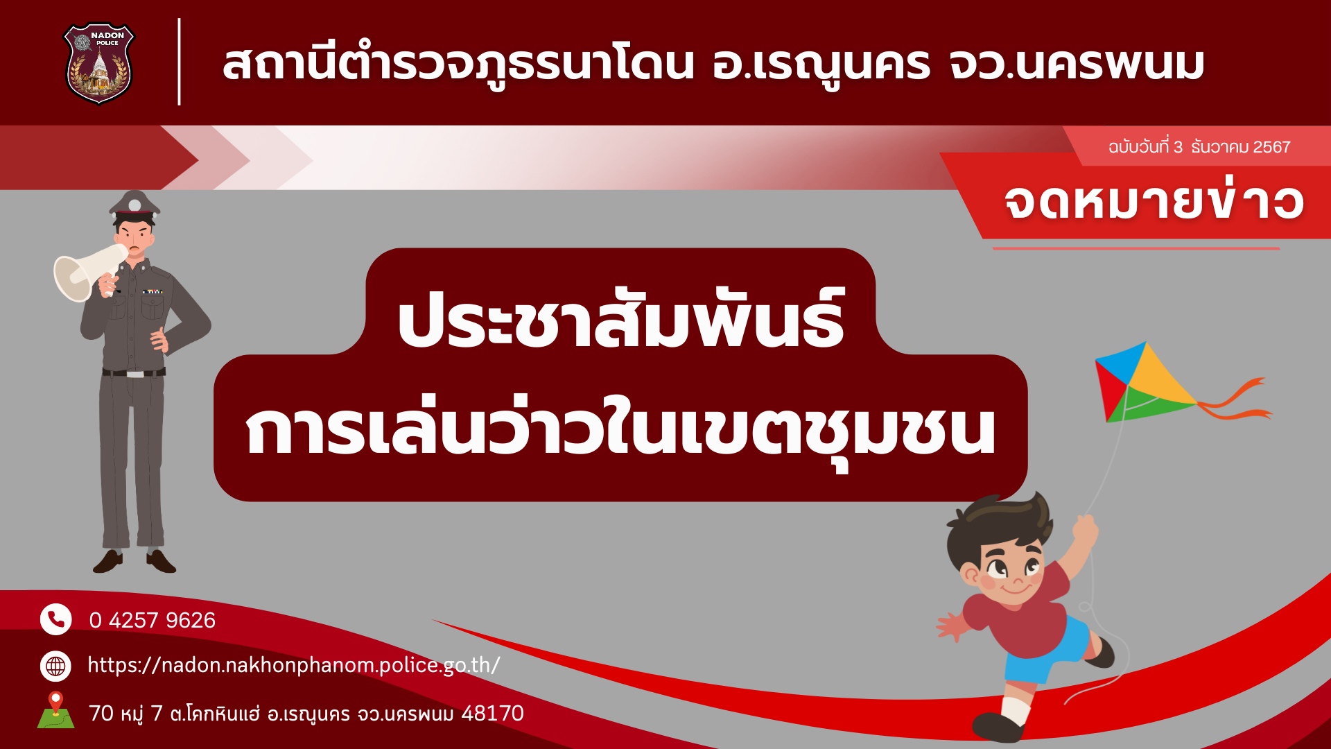 วันนี้ 7 ธ.ค.67 เวลา 12.30 น. พ.ต.ท.บุญรักษ์ เชิดชู สว.สภ.นาโดน มอบหมายให้ ร.ต.ต.ยุทธนา ขอดเมชัย รอง