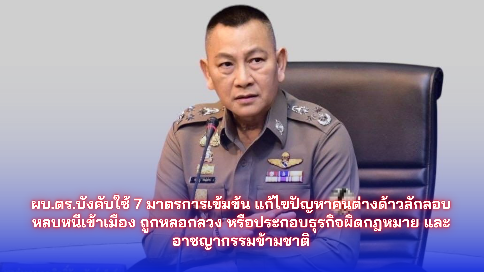 ผบ.ตร.บังคับใช้ 7 มาตรการเข้มข้นแก้ไขปัญหาคนต่างด้าวลักลอบหลบหนีเข้าเมือง ถูกหลอกลวง หรือประกอบธุรกิจผิดกฎหมาย และอาชญากรรมข้ามชาติ