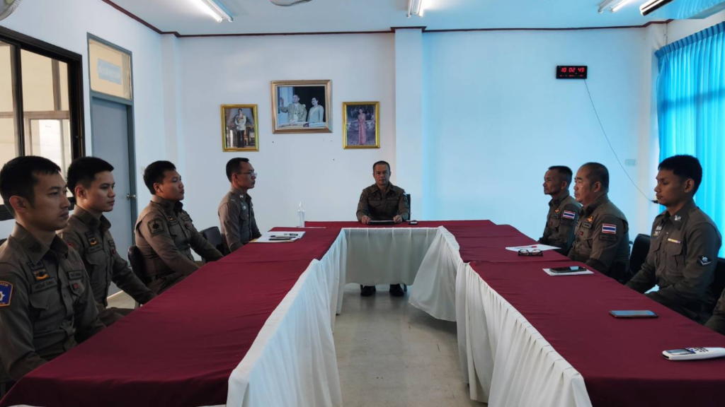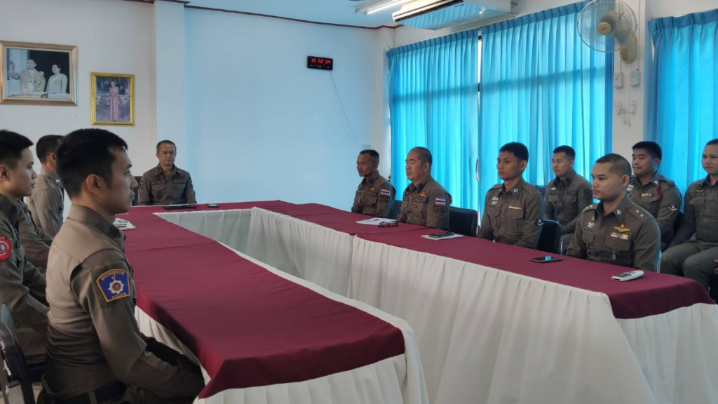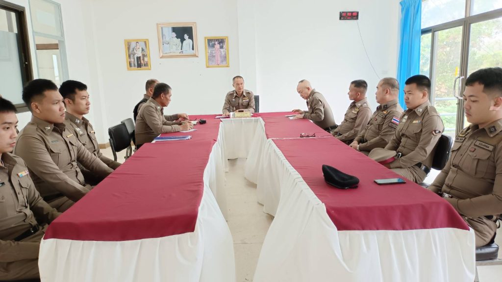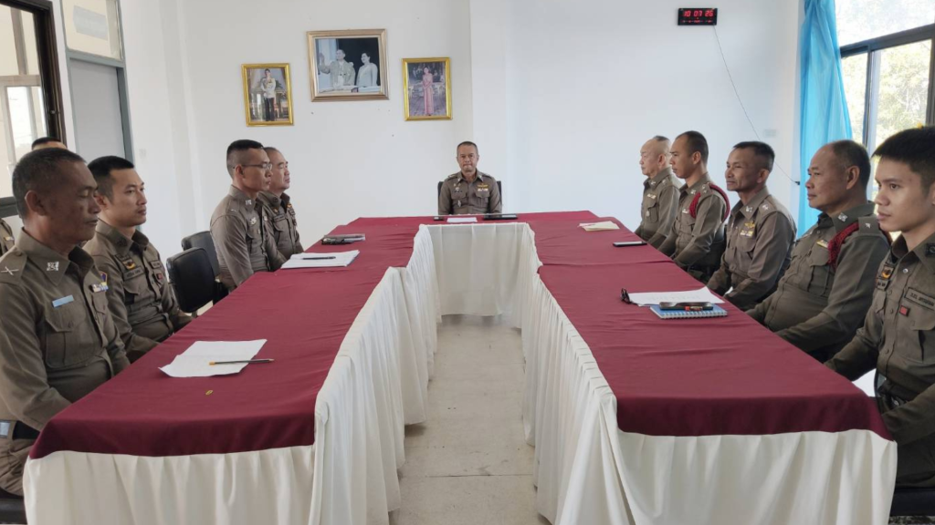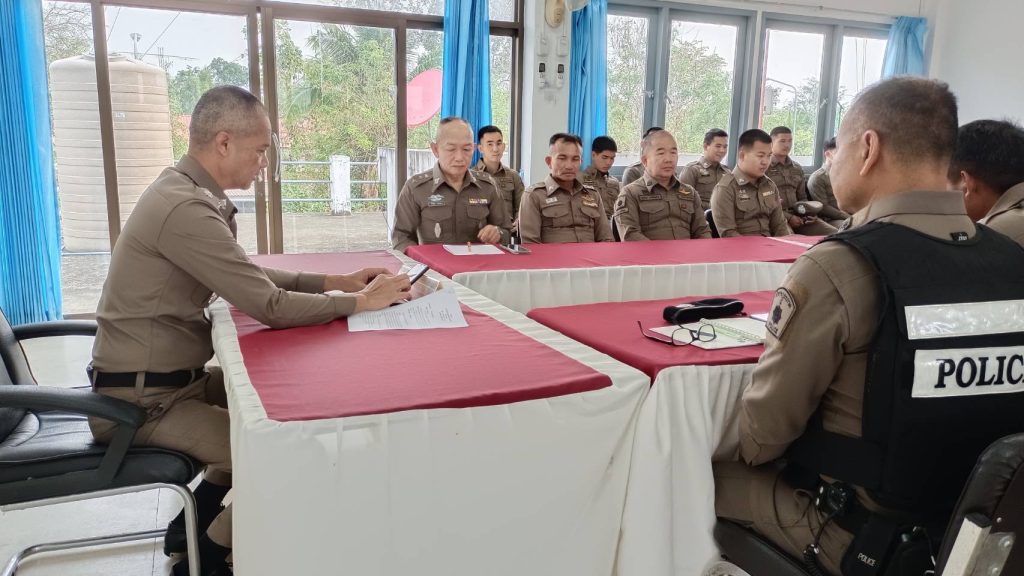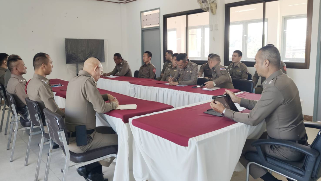 หัวหน้าสถานีตำรวจชี้แจงและให้ข้อมูลเกี่ยวกับการประเมินแก่เจ้าหน้าที่ตำรวจในหน่วยงาน วันที่ 4 ธ.ค.67