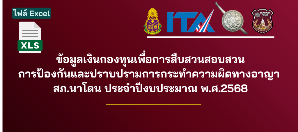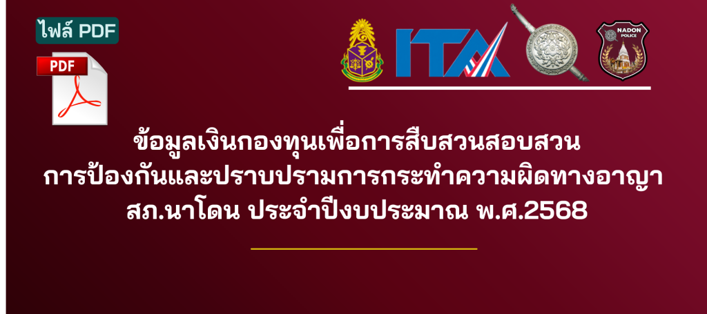 ข้อมูลเงินกองทุนเพื่อการสืบสวนสอบสวน การป้องกันและปราบปรามการ กระทำความผิดทางอาญา สภ.นาโดน ประจำปีงบประมาณ พ.ศ.2568